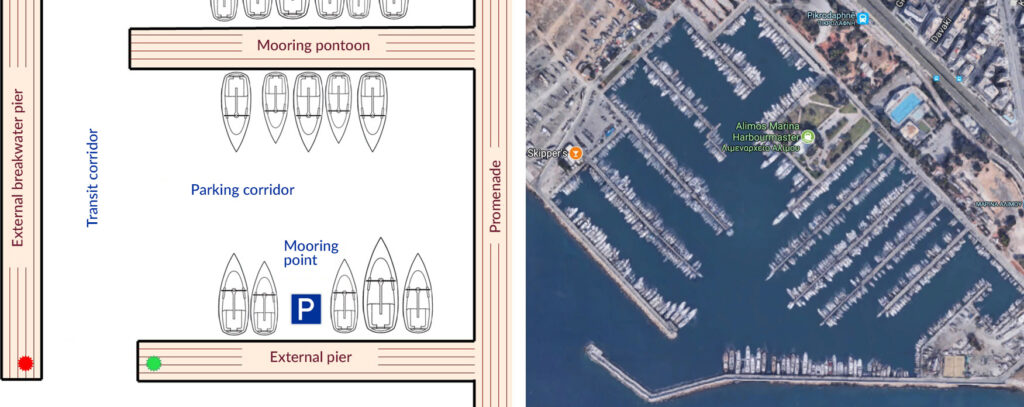 But first, let’s define some terms. Let’s consider the layout of yacht harbors using the