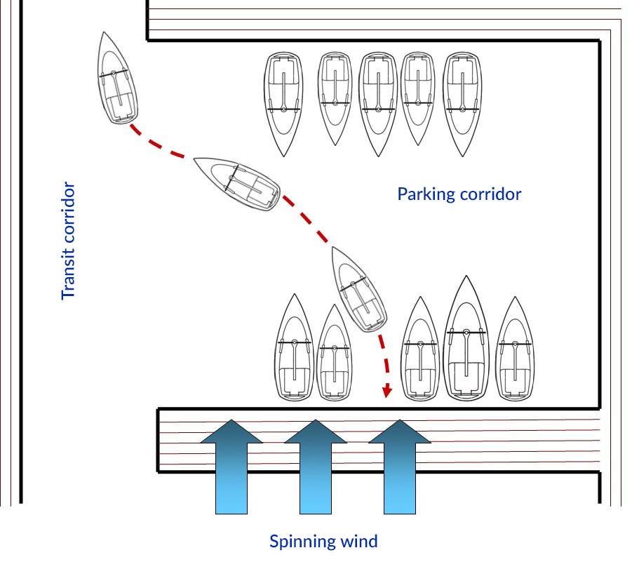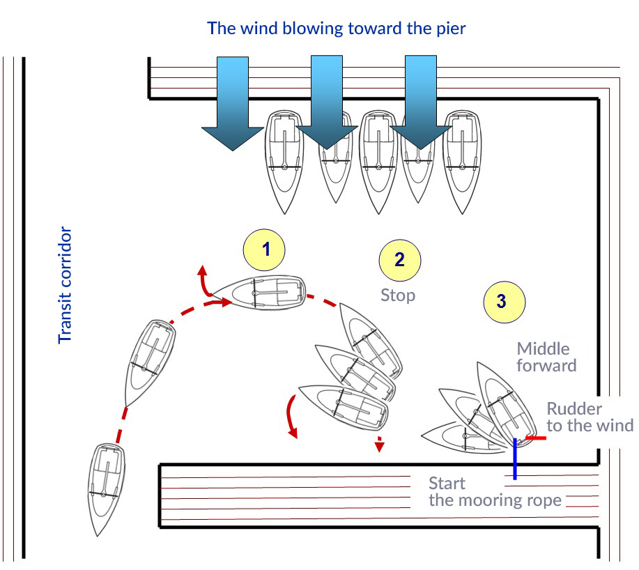 Now, what if we have a headwind? Mooring in such conditions requires precisely calculated
