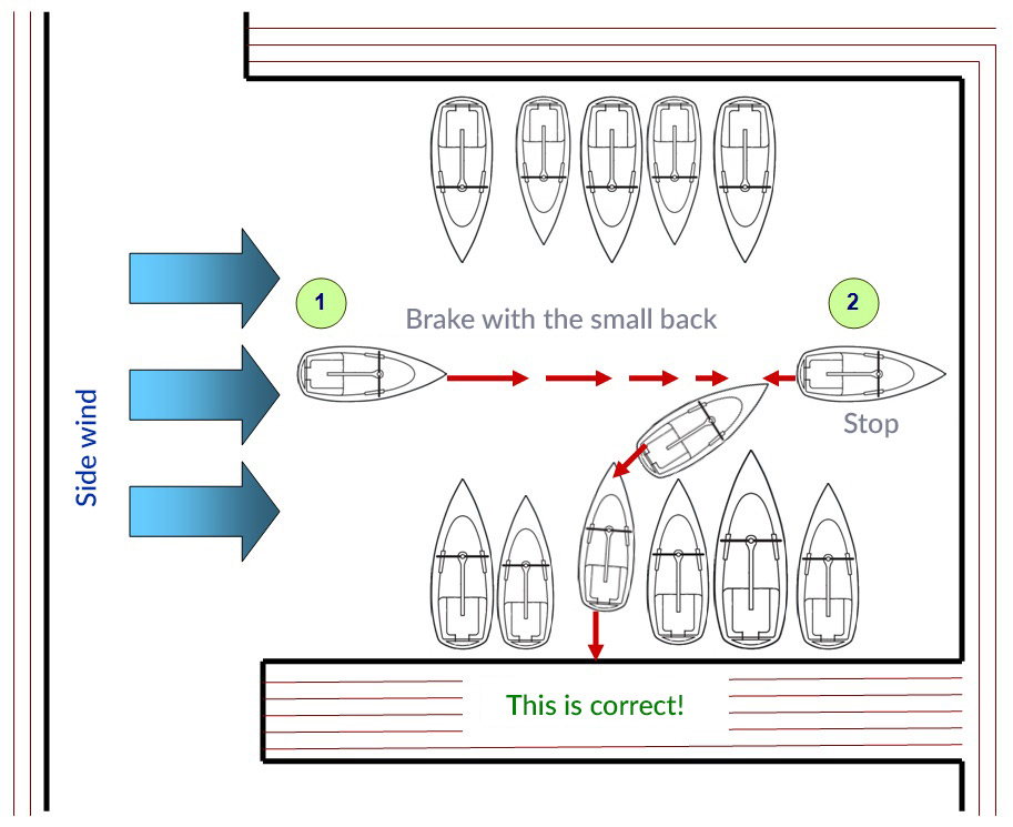 stop the boat slightly further away from the docking spot (pos. 2). We don’t need to