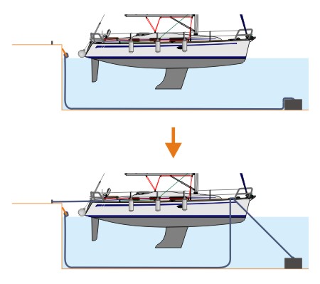 In the diagram (for clarity), the situation is shown with a leeward mooring. If you